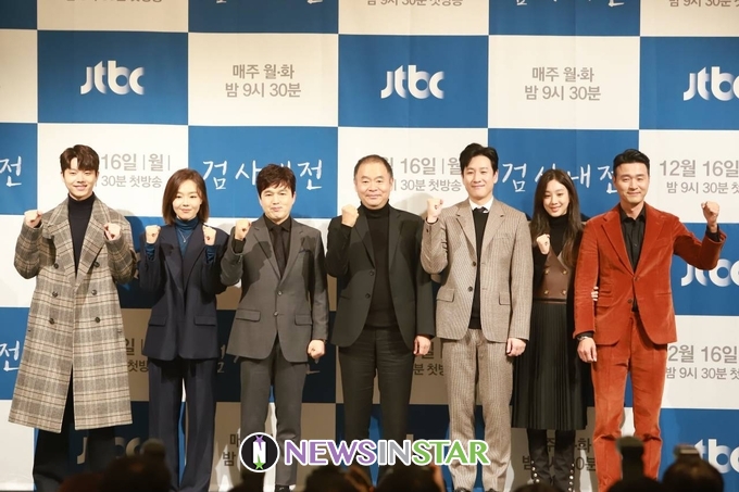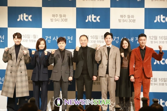 16일 오후 서울시 강남구 논현동 임피리얼팰리스서울 호텔에서 JTBC 새 월화드라마 '검사내전' 제작발표회가 열려 배우와 PD가 참석해 단체 포토타임을 갖고 있다.