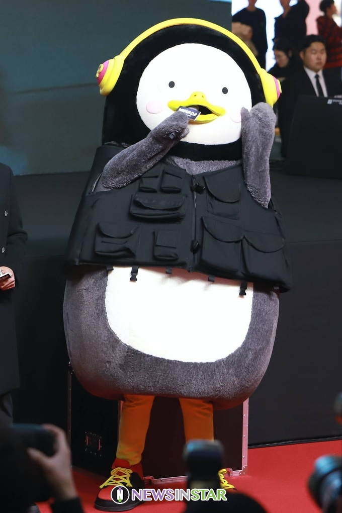 16일 오후 서울시 송파구 신천동 롯데월드몰에서 영화 '백두산' 레드카펫 쇼케이스가 열려 배우 이병헌, 하정우, 배수지, 전혜진과 EBS 연습생 펭수가 포토타임 행사를 갖고 있다.