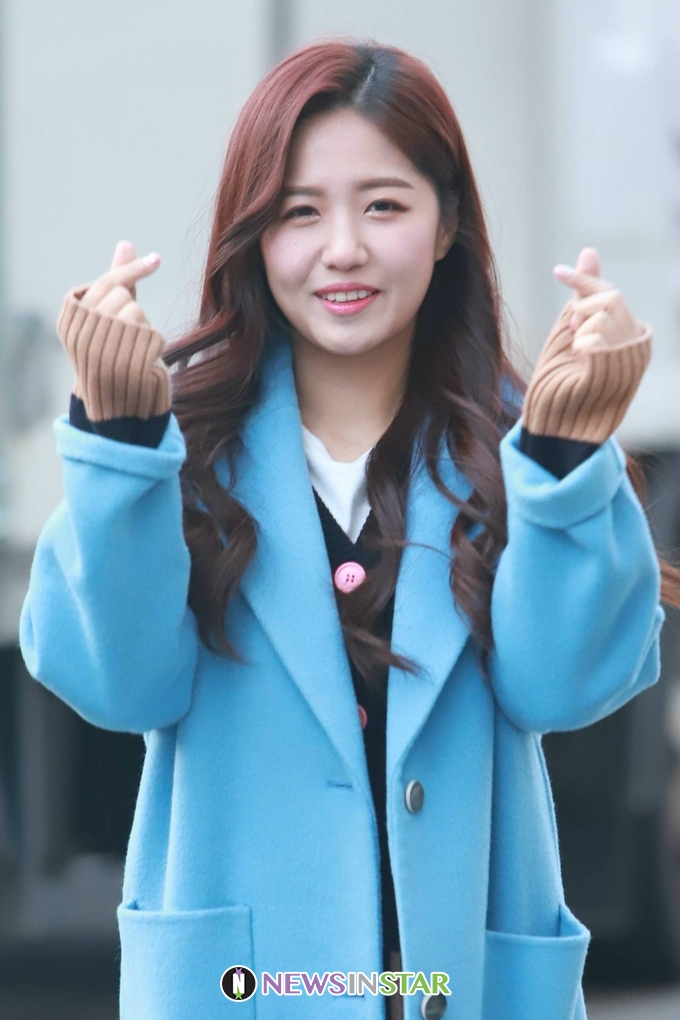 이날 정다경이 출근길에 포즈를 취하고 있다.