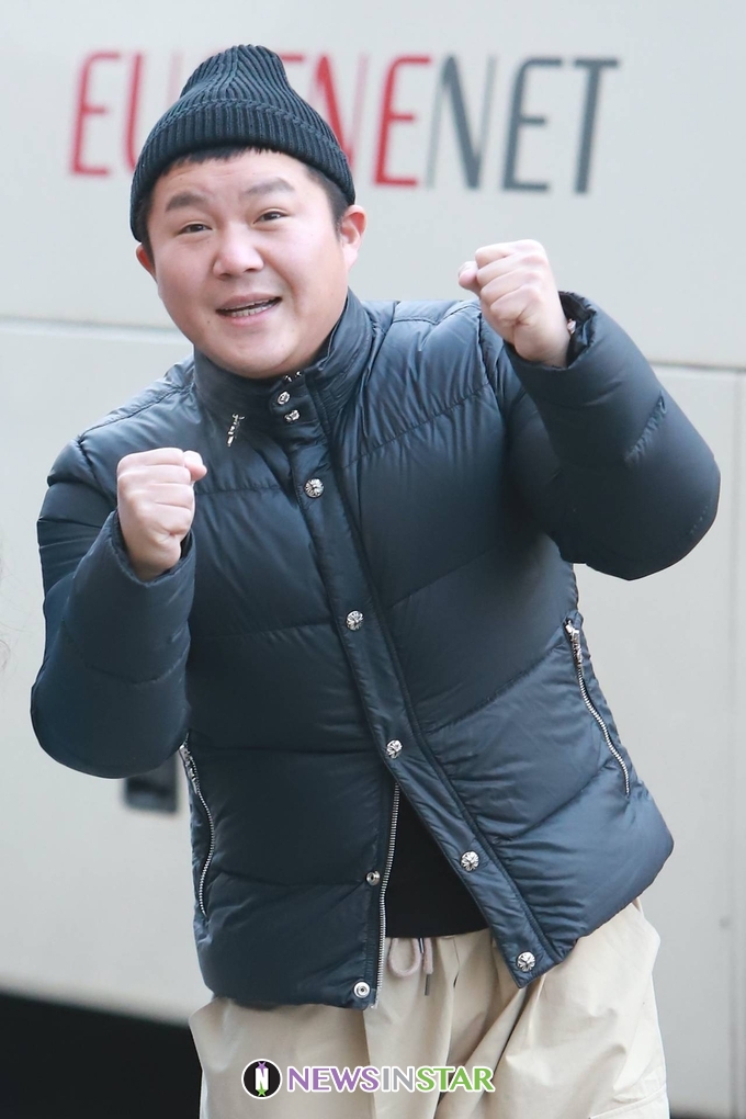 이날 조세호가 출근길에 포즈를 취하고 있다.