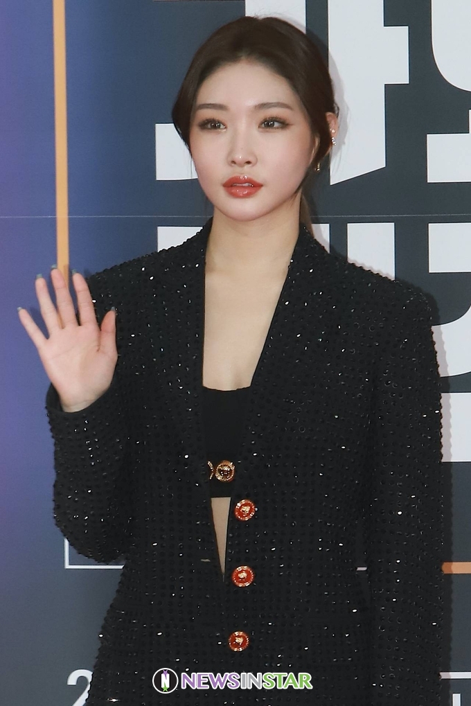 이날 포토월에서 청하가 참석해 포즈를 취하고 있다.