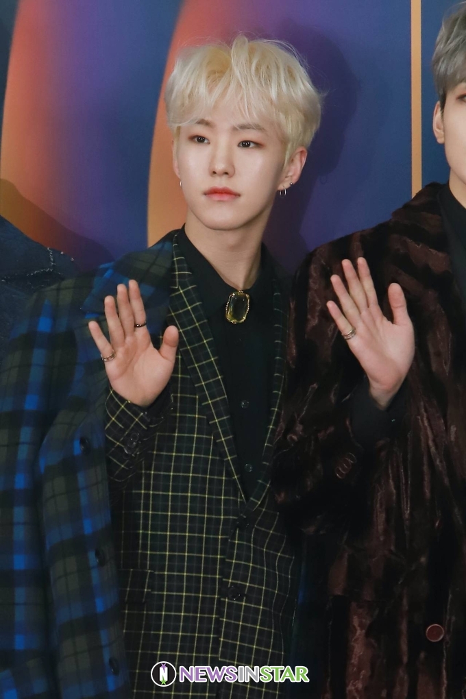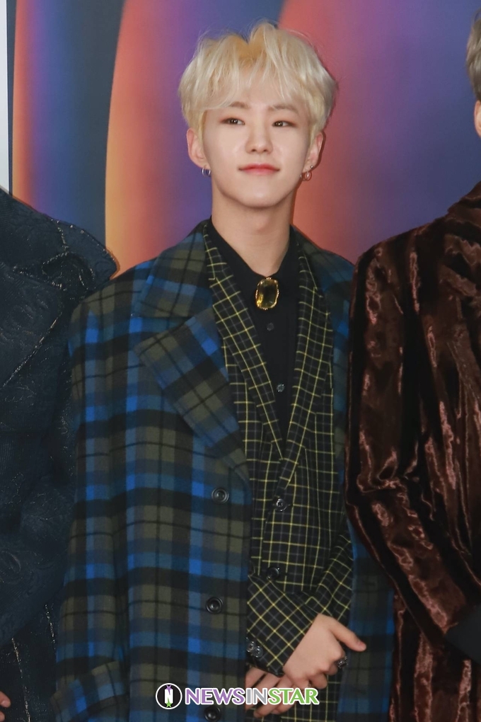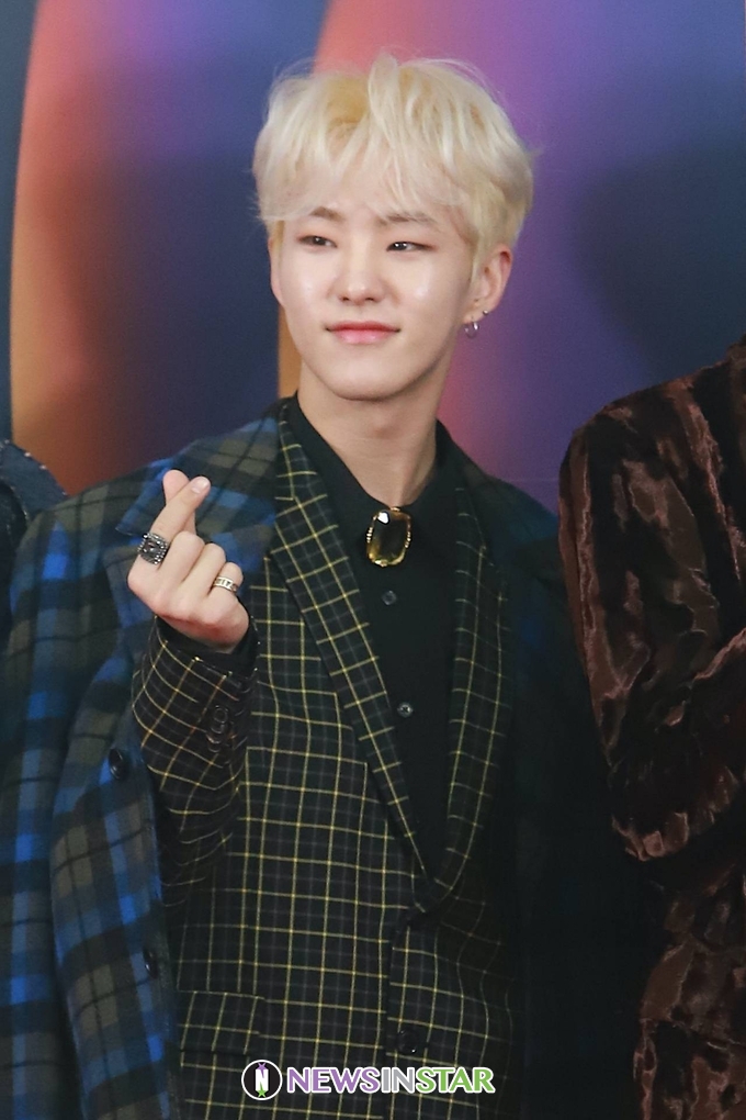 이날 포토월에서 세븐틴(Seventeen)  호시가 참석해 포즈를 취하고 있다.