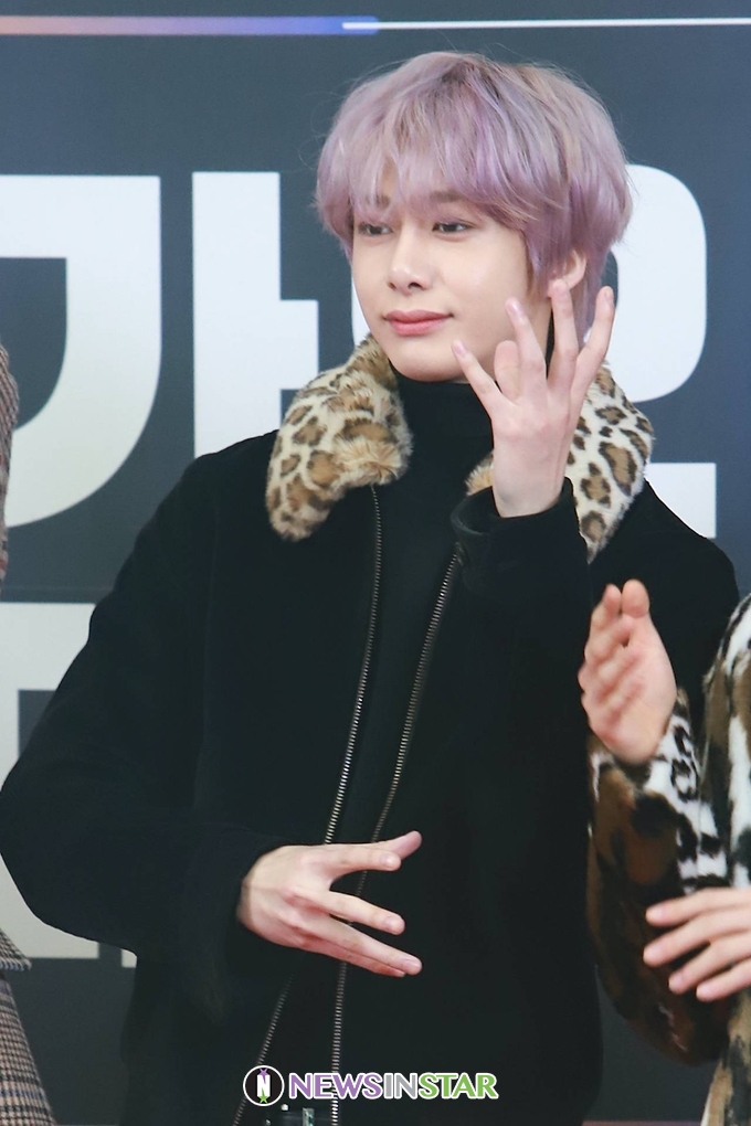 포토월에서 그룹 몬스타엑스(MONSTA X)  형원이 참석해 포즈를 취하고 있다.