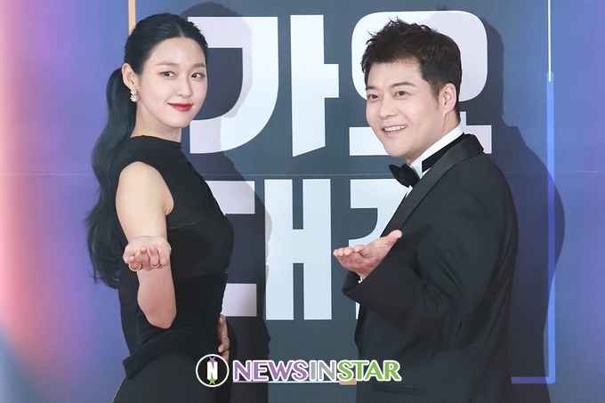 포토월에서 MC 전현무, 설현이 참석해 포즈를 취하고 있다.