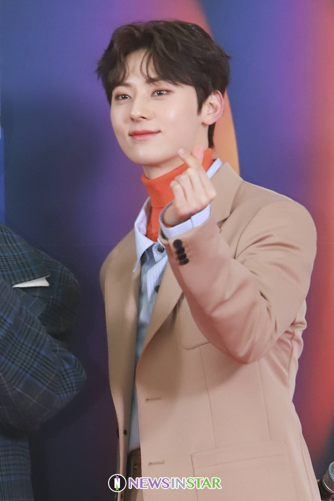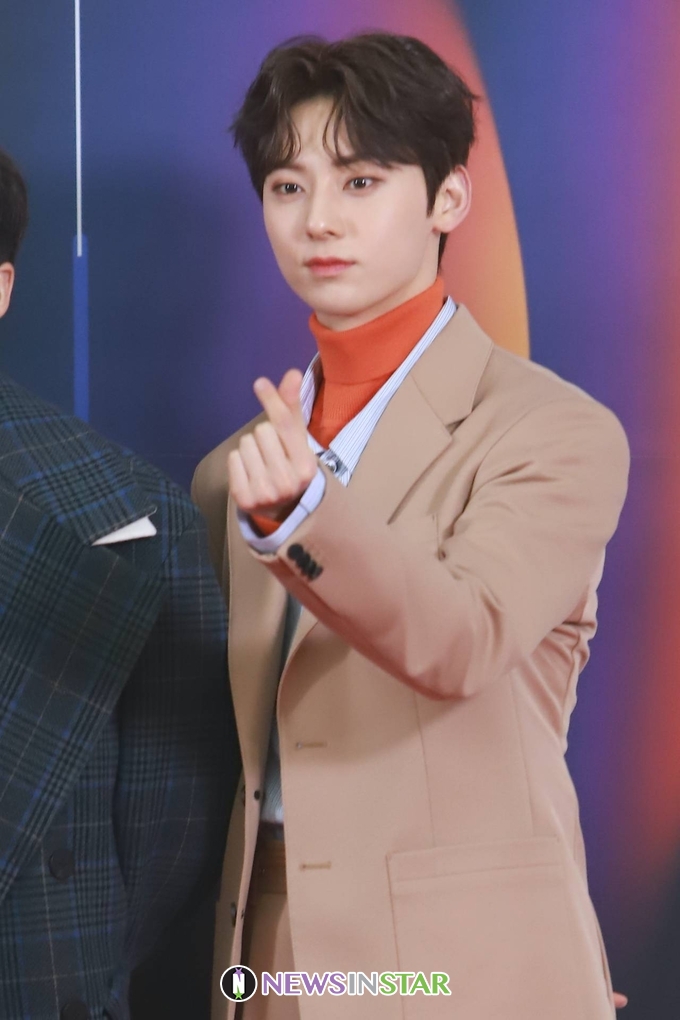 포토월에서 그룹 뉴이스트(NU'EST) 민현이 참석해 포즈를 취하고 있다.