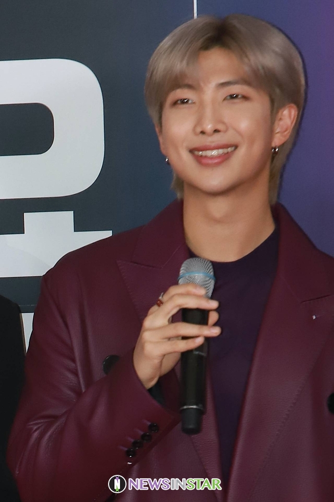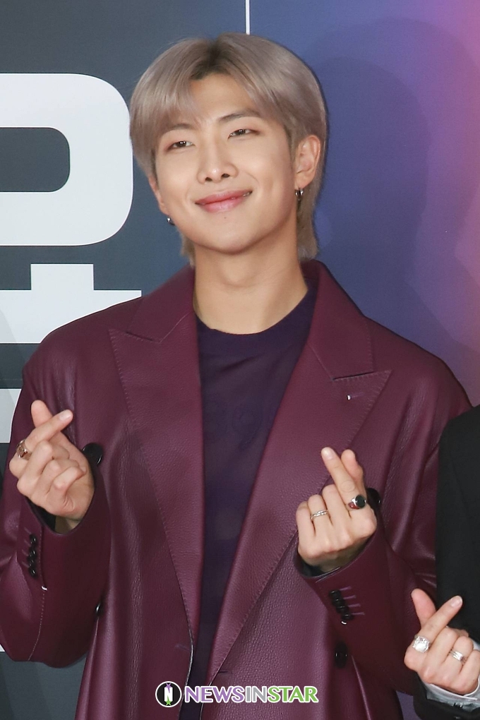 포토월에서 그룹 방탄소년단(BTS)  RM이 참석해 포즈를 취하고 있다.