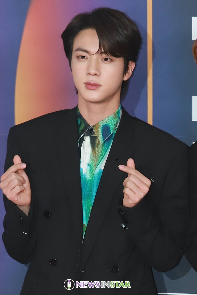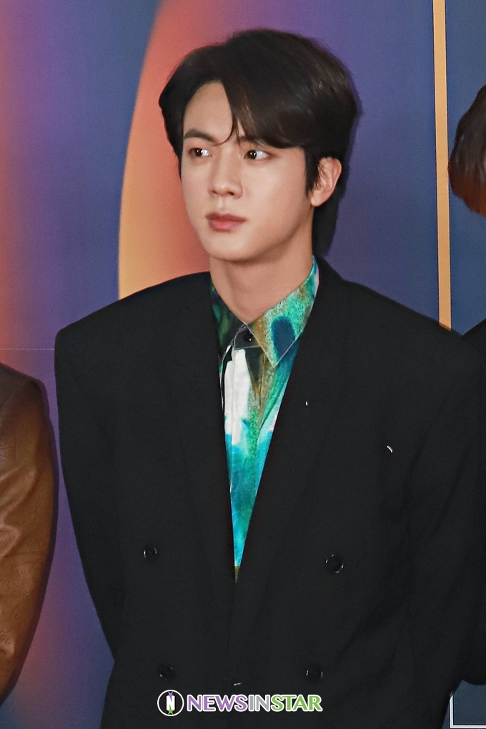포토월에서 그룹 방탄소년단(BTS) 진이 참석해 포즈를 취하고 있다.