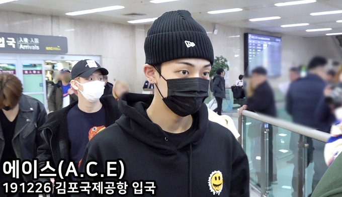 26일 오전 서울 강서구에 위치한 김포국제공항에서 그룹 에이스(A.C.E)가 해외 일정을 마치고 입국하고 있다.