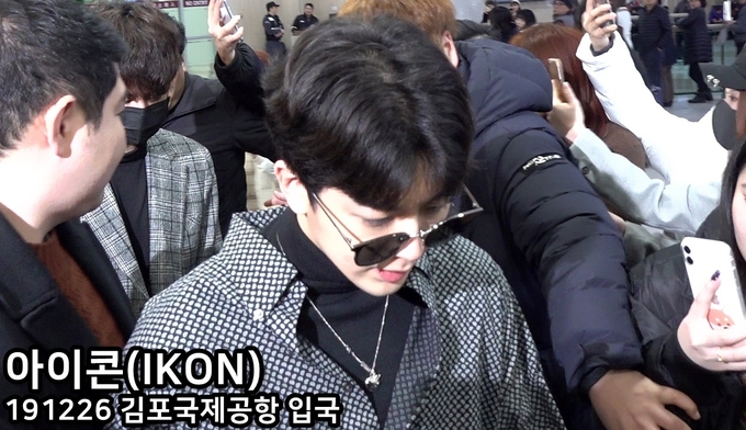 26일 오후 서울 강서구에 위치한 김포국제공항에서 그룹 아이콘이 해외 일정을 마치고 입국하고 있다.