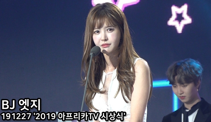 27일 오후 서울 서초구 양재동에 위치한 양재aT센터에서 '2019 아프리카TV 시상식(= 2019 BJ Awards)'이 진행되어 BJ 엣지가 '토크 BJ' 부문에서 대상을 수상 받고 있다.