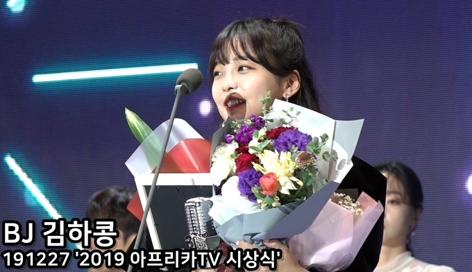 27일 오후 서울 서초구 양재동에 위치한 양재aT센터에서 '2019 아프리카TV 시상식(= 2019 BJ Awards)'이 진행되어 BJ 김하콩이 신인상을 수상 받고 있다.