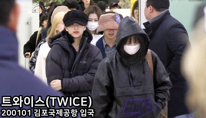 1일 오전 서울 강서구에 위치한 김포국제공항에서 걸그룹 트와이스(TWICE)가 NHK '홍백가합전' 촬영을 마치고 입국하고 있다.