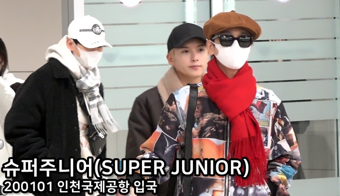 1일 오후 인천광역시 중구에 위치한 인천국제공항 제2터미널에서 그룹 슈퍼주니어의 예성, 동해, 은혁,려욱이 해외 일정을 마치고 입국하고 있다.