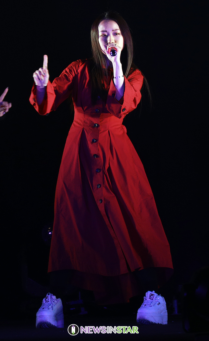 일본 가수 아라이 마쥬가 11일 오후 일본 시즈오카 시 시즈오카 현에 위치한 트윈 메세 시즈오카 북관 대형 전시장에서 열린 'SDGs 추진 TGC 시즈오카 2020 by TOKYO GIRLS COLLECTION(= TGC 시즈오카 2020)'에 참석하여 화려한 무대를 선보이고 있다.