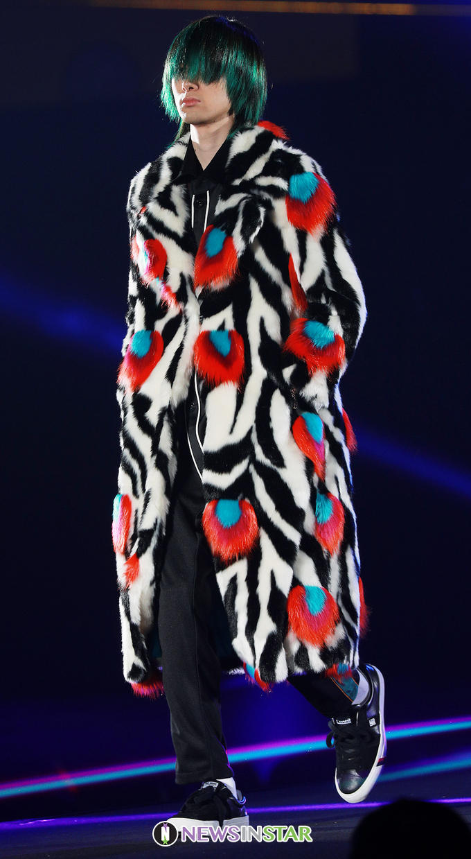 일본 그룹 SUPER DRAGON의 쟝 카이토가 11일 오후 일본 시즈오카 시 시즈오카 현에 위치한 트윈 메세 시즈오카 북관 대형 전시장에서 열린 'TGC 시즈오카 2020 by TOKYO GIRLS COLLECTION(=TGC 시즈오카 2020)'에 참석하여 런웨이를 선보이고 있다.