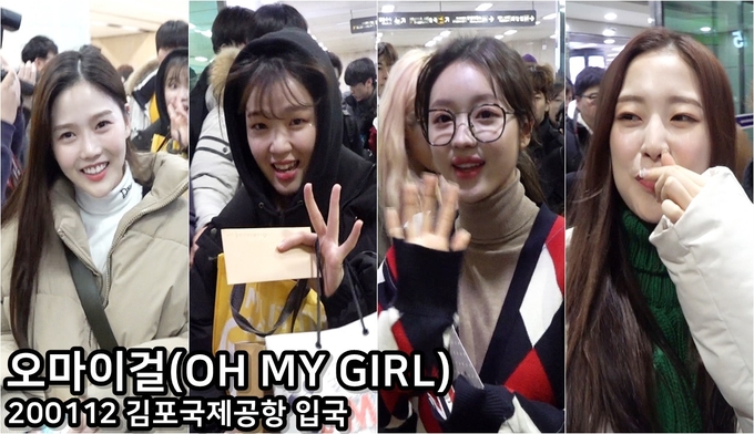 12일 오후 서울 강서구에 위치한 김포국제공항에서 걸그룹 오마이걸이 해외 일정을 마치고 일본 하네다에서 입국하고 있다.