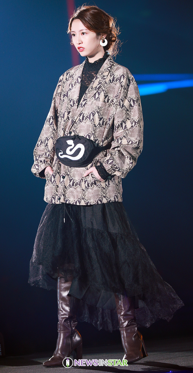 일본 모델 아오시마 히나가 11일 오후 일본 시즈오카 시 시즈오카 현에 위치한 트윈 메세 시즈오카 북관 대형 전시장에서 열린 'TGC 시즈오카 2020 by TOKYO GIRLS COLLECTION(=TGC 시즈오카 2020)'에 참석하여 런웨이를 선보이고 있다.