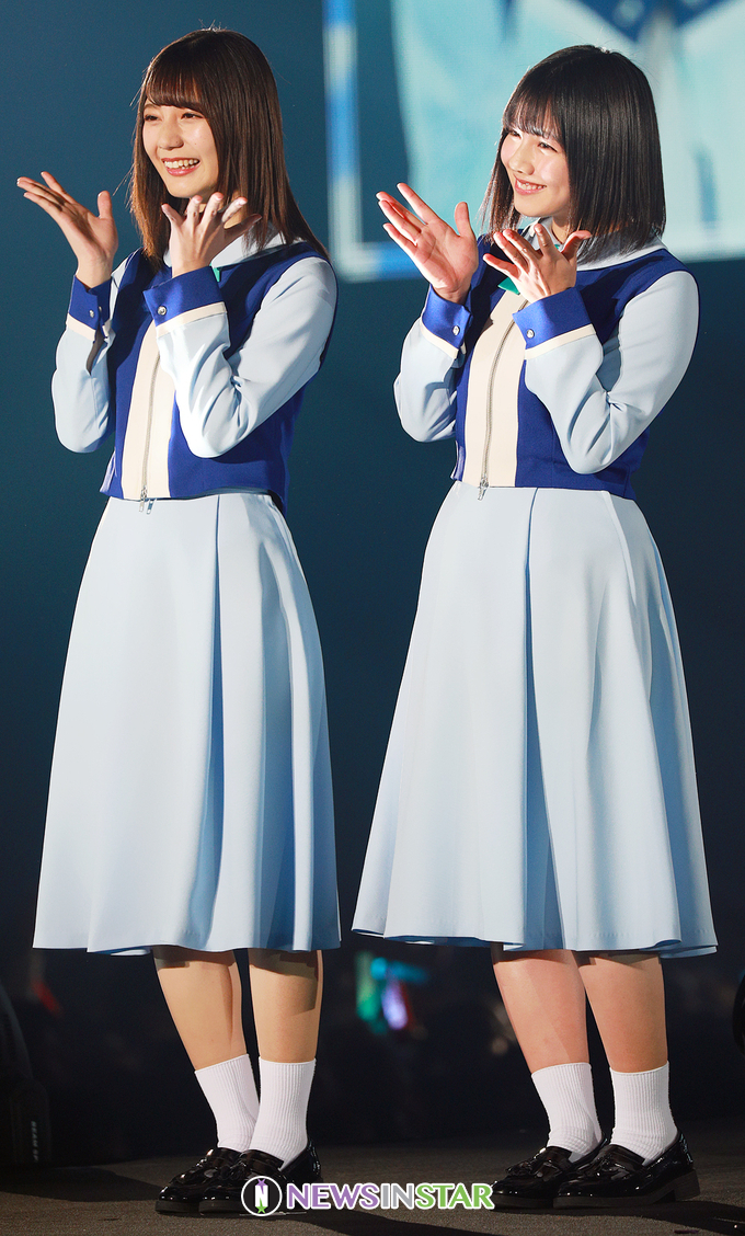 일본 걸그룹 히나타자카46의 코사카 나오와 와타나베 미호가 11일 오후 일본 시즈오카 시 시즈오카 현에 위치한 트윈 메세 시즈오카 북관 대형 전시장에서 열린 'TGC 시즈오카 2020 by TOKYO GIRLS COLLECTION(=TGC 시즈오카 2020)'에 참석하여 런웨이를 선보이고 있다.
