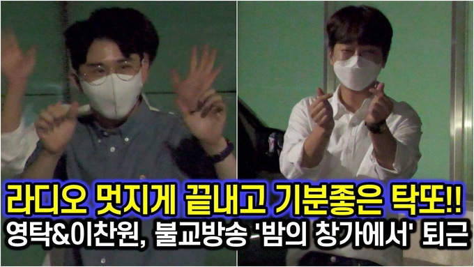 [뉴스인스타 양철수기자] 8월 24일(월) 저녁 서울시 마포구 마포동 다보빌딩 BBS불교방송에서 진행된 '밤의 창가에서 김명석입니다' 생방송 출연을 마치고 미스터트롯 영탁 & 이찬원이 방송국을 나서고 있다.