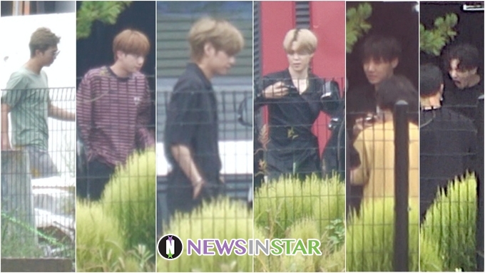 [뉴스인스타 양철수기자] 9월 13일(일) 오전 경기도 남양주시의 한 스튜디오에서 진행되는 프로모션 촬영 현장에 방탄소년단(BTS)의 RM, 진, 슈가, 제이홉, 지민, 뷔, 정국이 출근하고 있다.