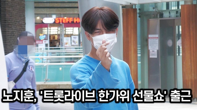9월 24일(목) 오후 서울시 마포구 서교동 신한카드 판스퀘어에서 진행되는 신한카드 ‘트롯 라이브 한가위 선물쇼’에 출연하기 위해 트롯 가수 노지훈이 행사장으로 들어서고 있다.