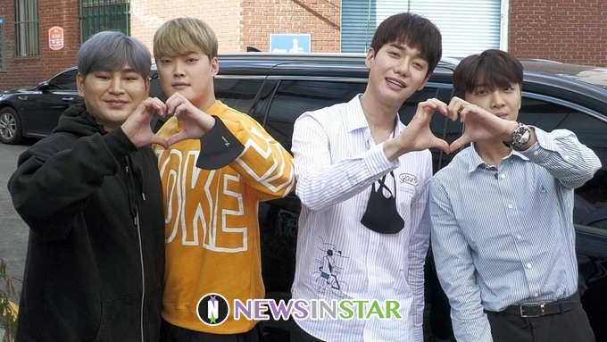 9월 26일(토) 오후 서울시 종로구 명륜동 한 스튜디오에서 진행된 트롯 아이돌 그룹 ‘미스터T’의 첫 미니앨범 ‘미스터T Vol.1’ 쇼케이스가 열려 강태관, 김경민, 이대원, 황윤성이 스튜디오에 도착하고 있다.