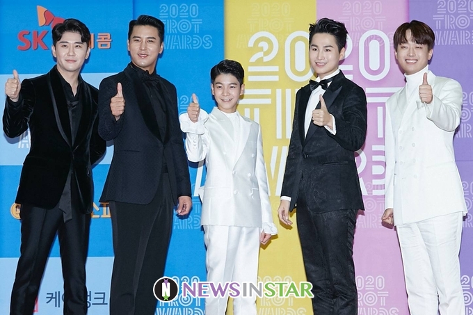 [뉴스인스타 양철수기자] 10월 1일(목) 경기도 고양시 일산서구 킨텍스 2전시장에서 진행되는 TV조선 '2020 트롯어워즈' 시상식 식전행사인 레드카펫에 미스터트롯 Top5 영탁, 이찬원, 정동원, 장민호, 김희재가 참석해 포토타임을 갖고 있다.