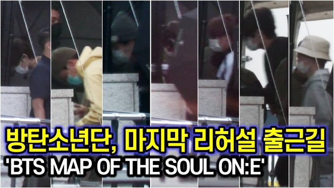 [뉴스인스타 양철수기자] 10월 9일(금) 오후 서울시 송파구 방이동 KSPO DOME(올림픽체조경기장)에서 그룹 방탄소년단의 온라인 콘서트 'BTS MAP OF THE SOUL ON:E' 마지막 리허설이 진행돼 RM, 진, 슈가, 제이홉, 지민, 뷔, 정국이 도착하고 있다.