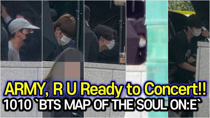 [뉴스인스타 양철수기자] 10월 10일(금) 오후 서울시 송파구 방이동 KSPO DOME(올림픽체조경기장)에서 그룹 방탄소년단의 온라인 콘서트 'BTS MAP OF THE SOUL ON:E' 첫 공연을 위해 RM, 진, 슈가, 제이홉, 지민, 뷔, 정국이 도착하고 있다.