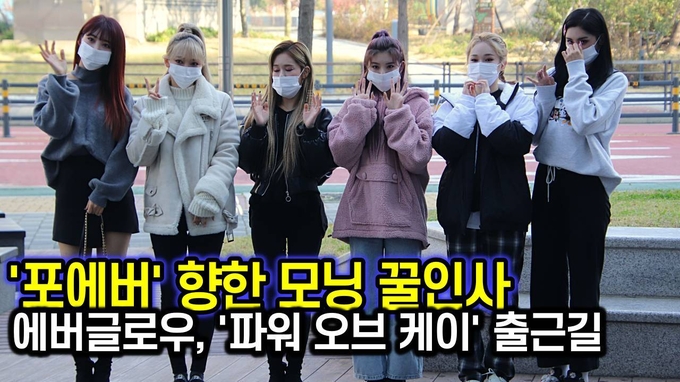 [뉴스인스타 양철수기자] 10월 26일(월) 오전 경기도 고양시 일산동구 빛마루방송지원센터에서 진행되는 KN/DA TV 한류 케이팝 프로그램 ‘파워 오브 케이(POWER OF K)’ 출연을 위해 에버글로우(EVERGLOW) 이유, 시현, 미아, 온다, 아샤, 이런이 스튜디오로 입장하고 있다.