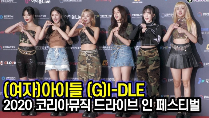 [뉴스인스타 양철수기자] 10월 31일(토) 오후 인천시 연수구 인천국제여객터미널에서 열린 ‘2020 코리아뮤직 드라이브 인 페스티벌(KMDF)’ 레드카펫 행사에 (여자)아이들 미연, 민니, 수진, 소연, 우기, 슈화가 참석해 포즈를 취하고 있다