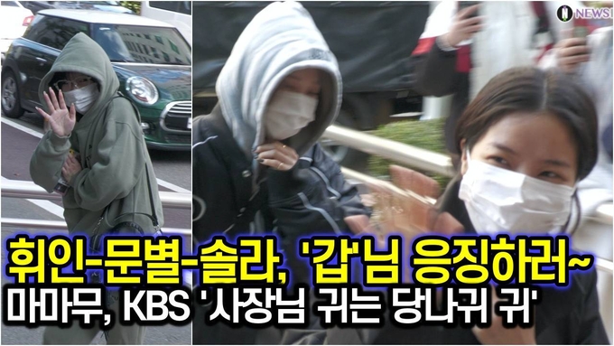 [뉴스인스타 양철수기자] 11월 3일(화) 오전, 서울시 영등포구 여의도동 KBS에서 진행된 KBS2 TV '사장님 귀는 당나귀 귀' 출연을 위해 방송국으로 마마무 휘인, 솔라, 문별이 입장하고 있다.