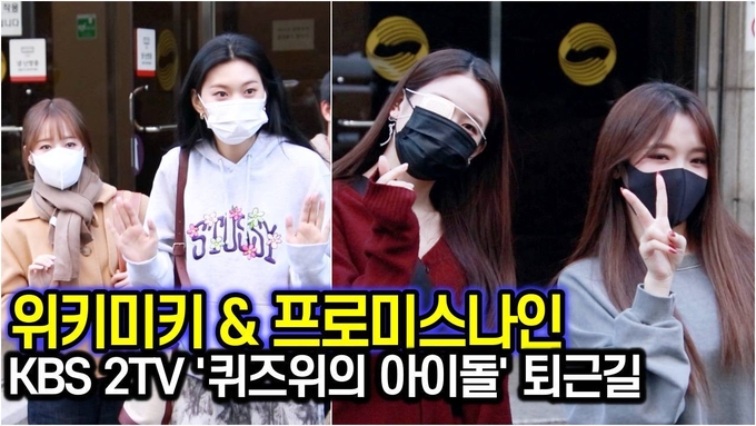 [뉴스인스타 양철수기자] 11월 11일(수) 오후 서울시 영등포구 여의도 KBS 공개홀에서 진행되는 KBS 예능 ‘퀴즈위의 아이돌’ 출연을 마치고 위키미키 도연, 유정 & 프로미스나인 노지선, 장규리가 방송국을 나서고 있다.