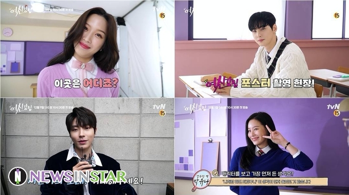 이 가운데 12일(목), ‘여신강림’의 포스터 촬영 비하인드 영상이 공개돼 관심을 높인다. 공개된 비하인드 영상 속 문가영, 차은우, 황인엽, 박유나는 각자 캐릭터의 색채로 완벽히 무장, 한도 초과의 매력을 뿜어내 보는 이들의 두 눈을 환하게 밝힌다.