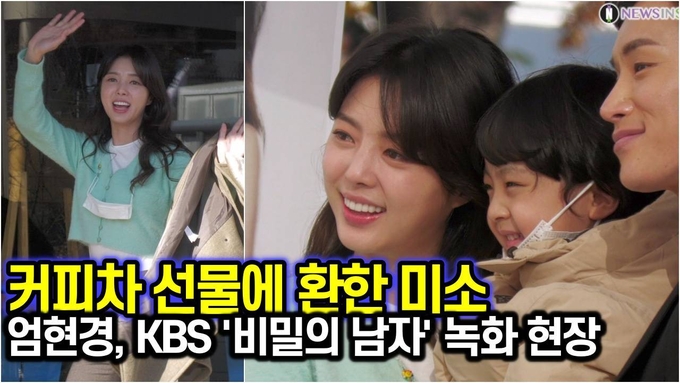 [뉴스인스타 양철수기자] 11월 23일(월) 서울시 영등포구 여의도 KBS별관에서 진행된 KBS 일일드라마 '비밀의 남자' 녹화장에서 배우 엄현경의 절친 미쓰라진, 권다현 부부가 선물한 커피차 앞에서 인증 사진을 찍고 스튜디오로 돌아가고 있다.