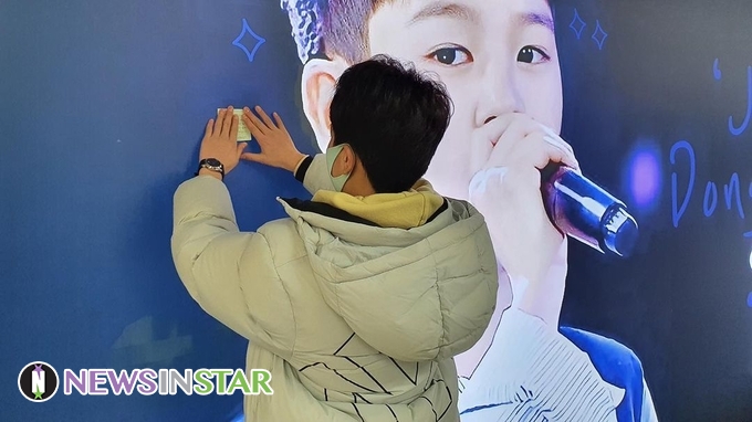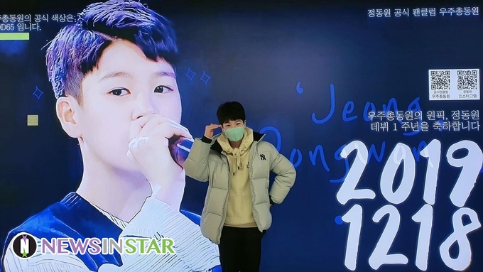 [뉴스인스타 양철수기자] 12월 8일(화) 미스터트롯 트로트 영재 정동원의 데뷔 1주년을 맞아 우주총동원 팬카페에서 서울 지하철 2호선 건대입구역에 기념 전광판을 설치해 정동원이 인증샷을 남기며 친필로 감사 인사를 남겼다.