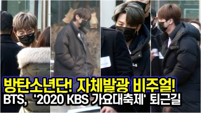 [뉴스인스타 양철수기자] 12월 17일(목) 오후 서울시 영등포구 여의도 KBS에서 진행된 ‘2020 KBS 가요대축제’ 사전녹화를 마치고 방탄소년단(BTS) RM, 진, 제이홉, 지민, 뷔, 정국이 방송국을 나서고 있다.