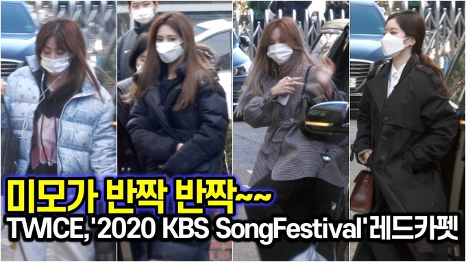 [뉴스인스타 양철수기자] 12월 18일(금) 오후 서울시 영등포구 여의도 KBS에서 진행된 ‘2020 KBS 가요대축제’ 생방송과 레드카펫 출연을 위해 트와이스(TWICE) 쯔위, 다현, 지효, 미나가 방송국으로 들어서고 있다.
