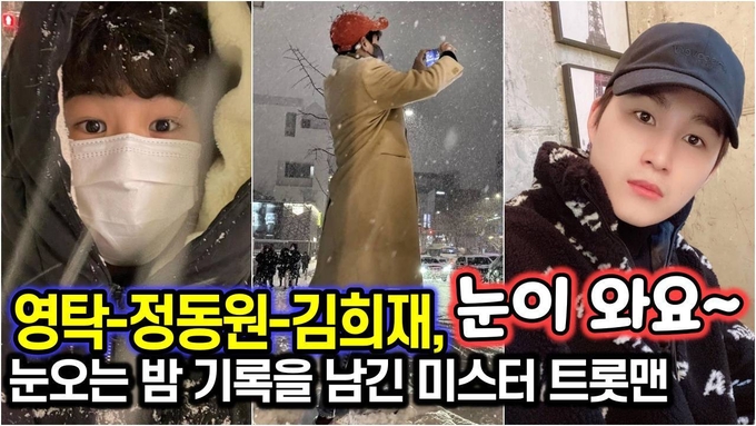 미스터 트롯맨 영탁, 정동원, 김희재가 인스타그램을 통해 눈오는 밤을 기록에 남겼다. (사진 : SNS)