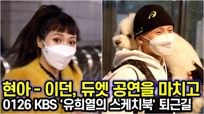 [뉴스인스타 양철수기자] 1월 26일(화) 오후 서울시 영등포구 여의도 KBS 별관에서 진행된 KBS 2TV ‘유희열의 스케치북’ 녹화를 마치고 현아와 이던이 방송국을 나서고 있다