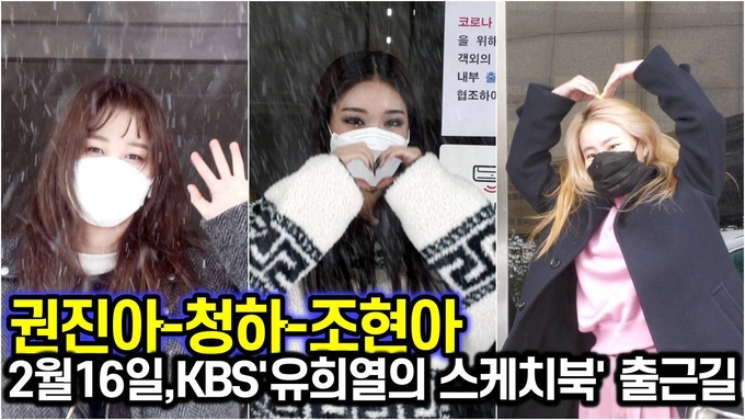 [뉴스인스타 양철수기자] 2월 16일(화) 오후, 서울시 영등포구 여의도 KBS에서 진행되는 ‘유희열의 스케치북’ 녹화를 위해 가수 청하, 권진아, 조현아가 방송국에 도착하고 있다.