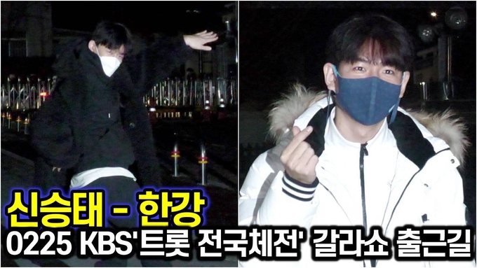 [뉴스인스타 양철수기자] 2월 25일(목) 새벽, 서울시 영등포구 여의도동 KBS공개홀에서 진행되는 KBS '트롯 전국체전' 갈라쇼 녹화에 참석하기 위해 신승태와 한강이 방송국에 도착하고 있다.