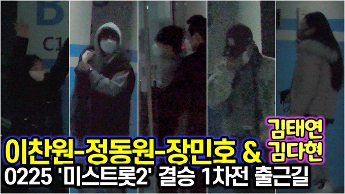 [뉴스인스타 양철수기자] 2월 25일(목) 경기도 고양시 일산 빛마루방송지원센터에서 진행되는 TV조선 '미스트롯2' 결승 1차전 생방송 출연을 위해 특별 마스터 미스터트롯 이찬원, 정동원, 장민호와 결승 진출자인 김태연, 김다현이 출근하고 있다.