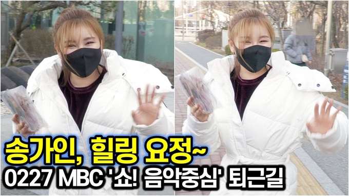 [뉴스인스타 양철수기자] 2월 27일(토) 오후, 서울시 마포구 상암동 MBC에서 진행된 MBC ‘쇼! 음악중심’ 생방송 출연을 마치고 송가인이 방송국을 떠나고 있다.