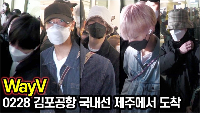 [뉴스인스타 양철수기자] 2월 28일(일) 오후, 서울시 강서구 방화동 김포국제공항 국내선 터미널에서 웨이션브이(Way V) 쿤, 텐, 샤오쥔, 양양, 헨드리가 제주도에서 일정을 마치고 김포공항을 통해 도착하고 있다.