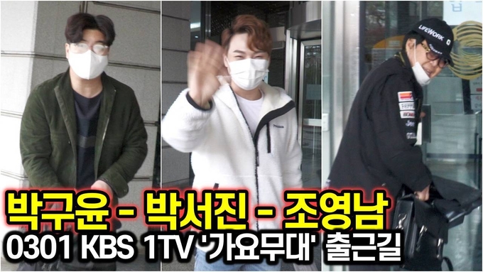 [뉴스인스타 양철수기자] 3월 1일(월) 오후, 서울시 영등포구 여의도 KBS 별관에서 진행되는 KBS 1TV ‘가요무대' 녹화를 위해 박구윤, 박서진, 조영남이 방송국에 도착하고 있다.