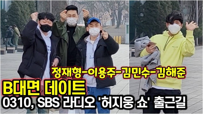 [뉴스인스타 양철수기자] 3월 10일(수) 오후, 서울시 양천구 목동 SBS본사 에서 진행되는 SBS 라디오 ‘허지웅 쇼’ 녹화를 위해 ‘피식대학 - B대면 데이트' 카페 사장 최준(김해준), 임플란티드 키드(김민수), 수원 명석중고차 이사(이용주), 누 라이프(Nu Life) 다단계 회사 직원(정재형)이 방송국에 도착하고 있다.
