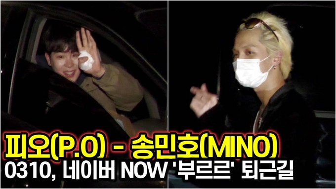 [뉴스인스타 양철수기자] 3월 10일(수) 오후, 서울시 강남구 논현동 한 스튜디오에서 네이버 NOW ‘Brrr Friends(부르르)’ 방송을 마치고 MC 송민호, 피오가 스튜디오를 나서고 있다.