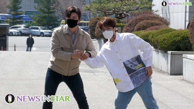 [뉴스인스타 양철수기자] 3월 22일(월) 오후, 서울시 영등포구 여의도 KBS 별관에서 진행되는 KBS 1TV ‘가요무대' 녹화를 위해 트롯 전국체전 금메달 은메달 진해성, 재하가 방송국에 도착하고 있다.
