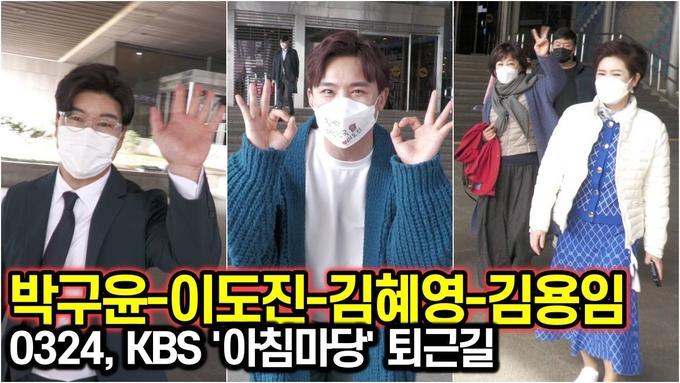 [뉴스인스타 양철수기자] 3월 24일(수) 오전, 서울시 영등포구 여의도 KBS에서 진행된 KBS 1TV '아침마당' 생방송을 마치고 트롯 가수 이도진, 박구윤, 김용임과 김혜영이 방송국을 나서고 있다.